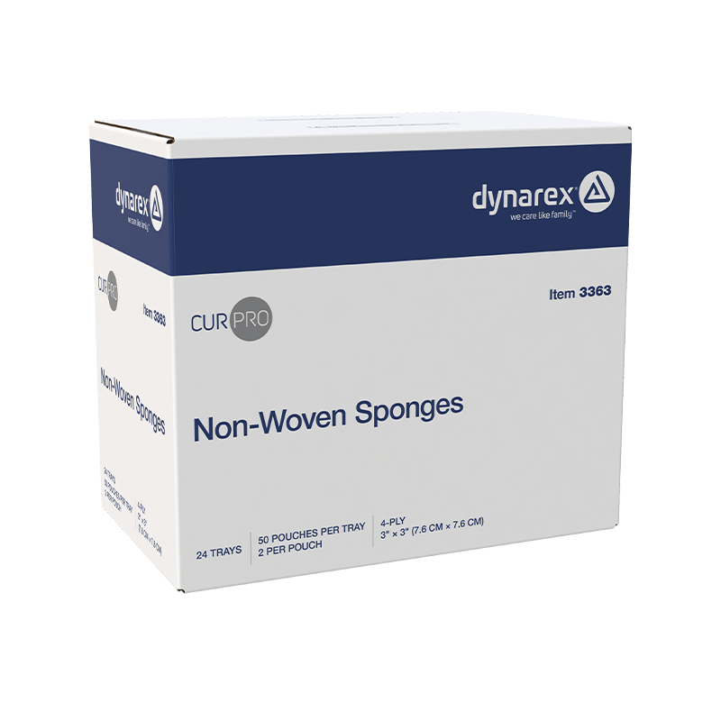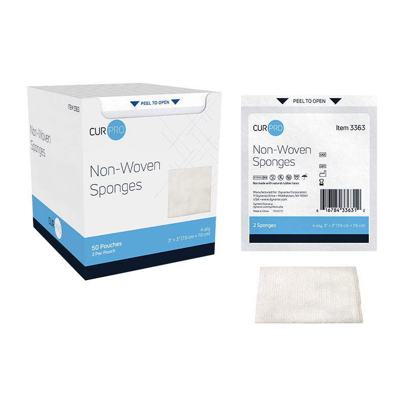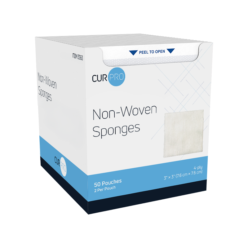 CurPro Non-Woven Sponges are premium-quality, highly absorbent dressings ideal for general wound care, including cleaning, prepping, and dressing a wide range of wounds. The non-woven construction produces less lint than traditional woven gauze. Available in sterile and non-sterile options, sterile varieties are available in peel-down pouches, packed in open trays for convenient, aseptic handling during procedures.