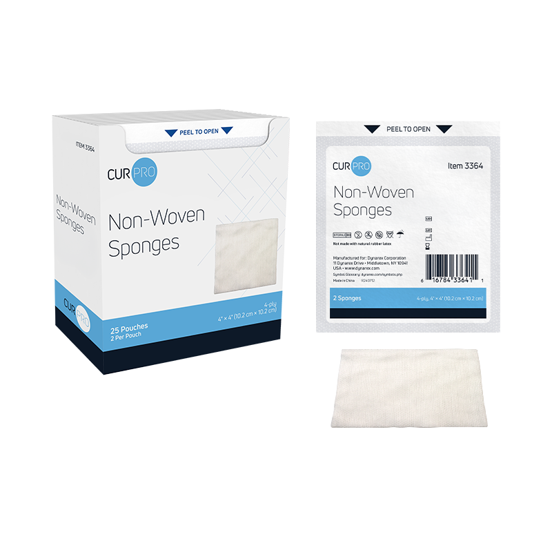 CurPro Non-Woven Sponges are premium-quality, highly absorbent dressings ideal for general wound care, including cleaning, prepping, and dressing a wide range of wounds. The non-woven construction produces less lint than traditional woven gauze. Available in sterile and non-sterile options, sterile varieties are available in peel-down pouches, packed in open trays for convenient, aseptic handling during procedures.