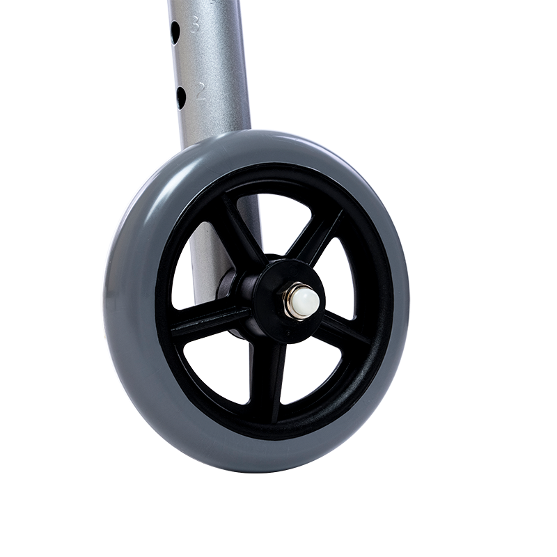 The Dynarex Steel Two-Button Walker with Wheels features sturdy steel construction for durable, dependable support and long-lasting performance. This versatile Walker is equipped with 5-inch front wheels for reliable use both indoors and outdoors. Contoured handgrips allow for added patient comfort. The Dynarex Steel Two-Button Walker with Wheels features tool-free height adjustments for optimal convenience and easy customization.