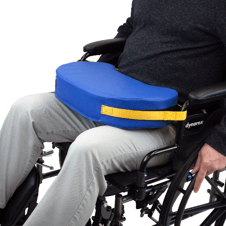 The Dynarex Wheelchair Lap Hugger is designed to fit securely between wheelchair armrests to enhance upper body alignment and provide a comfortable resting place for hands and arms. Constructed with a dense foam core, the Lap Hugger provides improved postural support and helps to remind wheelchair occupants to stay seated for optimal safety.