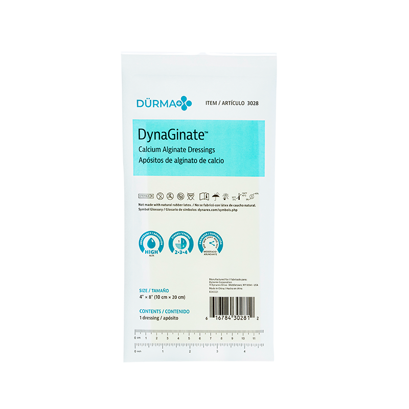 Dürma+ DynaGinate Calcium Alginate Dressings form a soft, fibrous gel upon contact with wound exudate, helping to create a moist environment while contouring to the wound bed.