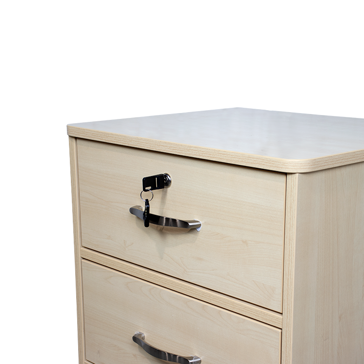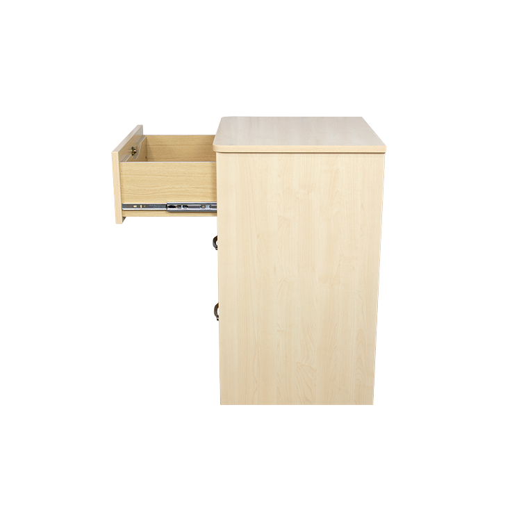 The Dynarex Three Drawer Nightstand combines safety, durability, and style for ample and efficient storage and organization of bedside items to help reduce clutter. The space-saving Nightstand features a locking top drawer with two keys for secure storage of personal belongings. Ball-bearing drawer slides allow for smooth sliding and quiet closure. The Nightstand is engineered with rounded corners for optimal safety and features a choice of attractive wood-finishes to complement a wide-range of settings and decors.