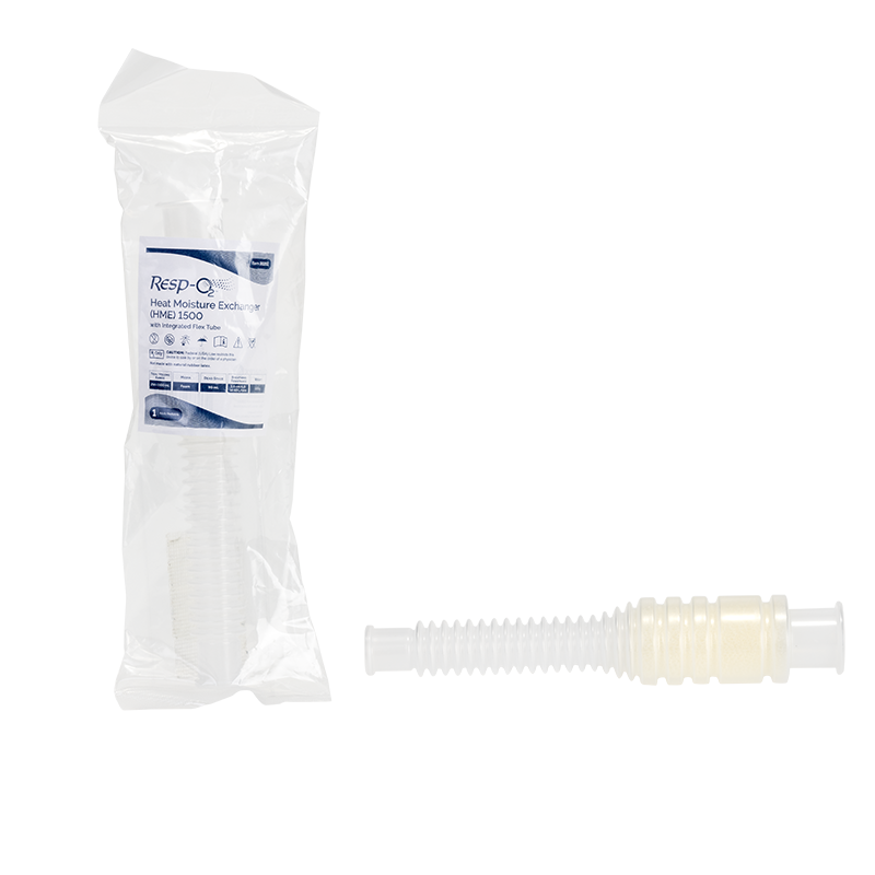 Dynarex Resp-O2 HMEs are single-use respiratory devices designed to provide humidification and help prevent mucosal dryness during mechanical patient ventilation and other respiratory treatments.