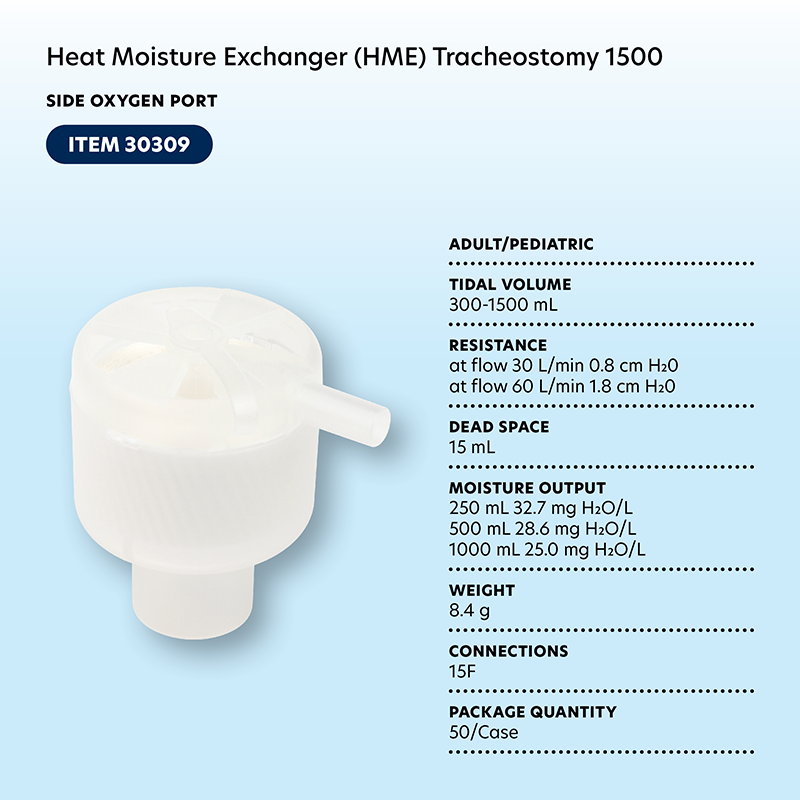 Dynarex Resp-O2 Trach HMEs are single-use, disposable respiratory devices designed to provide humidification for tracheostomy patients.