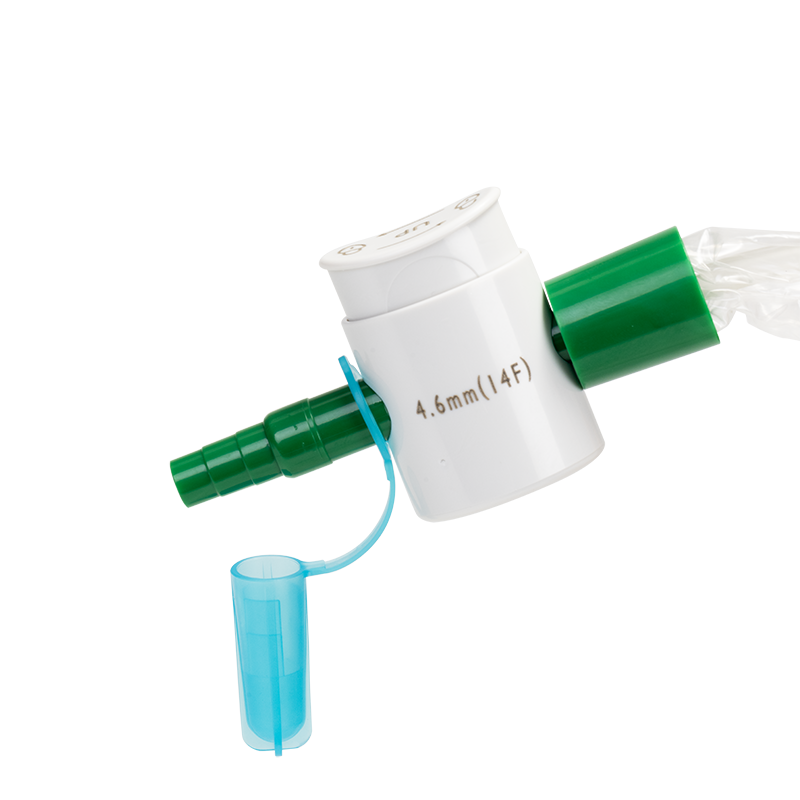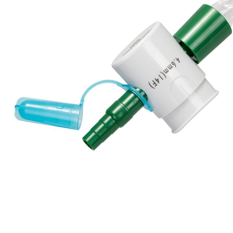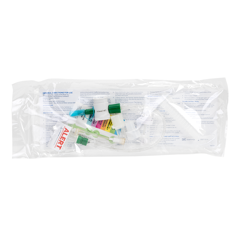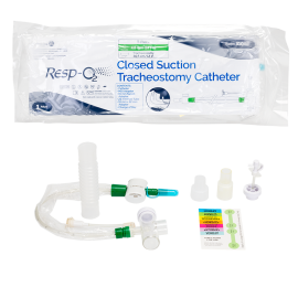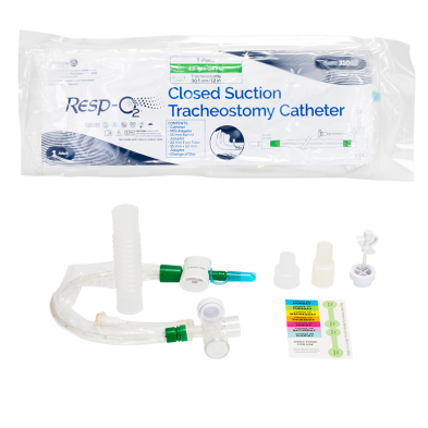Dynarex Resp-O2 Closed Suction Trach Catheters are disposable respiratory devices designed to safely remove secretions from the respiratory tracts of ventilator-dependent patients. The device allows ventilation to continue during suctioning, helps prevent cross-contamination, and protects caregivers from airborne pathogens.