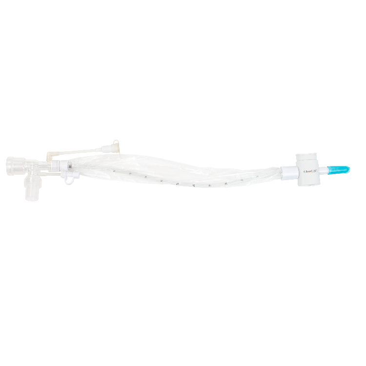 Dynarex Resp-O2 Closed Suction Trach Catheters are disposable respiratory devices designed to safely remove secretions from the respiratory tracts of ventilator-dependent patients. The device allows ventilation to continue during suctioning, helps prevent cross-contamination, and protects caregivers from airborne pathogens.