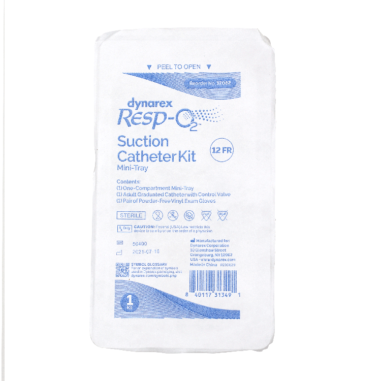 Dynarex Resp-02™ Open Suction Catheters Mini-Kits are designed to safely and effectively remove secretions from the respiratory tracts of tracheostomy patients. The soft, flexible catheter with beveled tip is gentle on delicate mucosal tissue yet firm enough to allow for catheter rotation. The catheter includes a vented cap control valve for enhanced suction control and features two eyelet openings for increased suctioning effectiveness with minimal patient trauma. Each Kit also features a mini-tray to hold irrigation solutions and a pair of powder-free vinyl exam gloves.