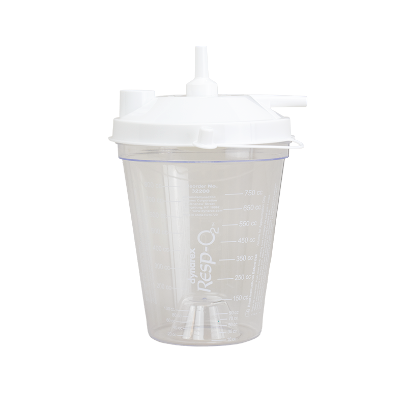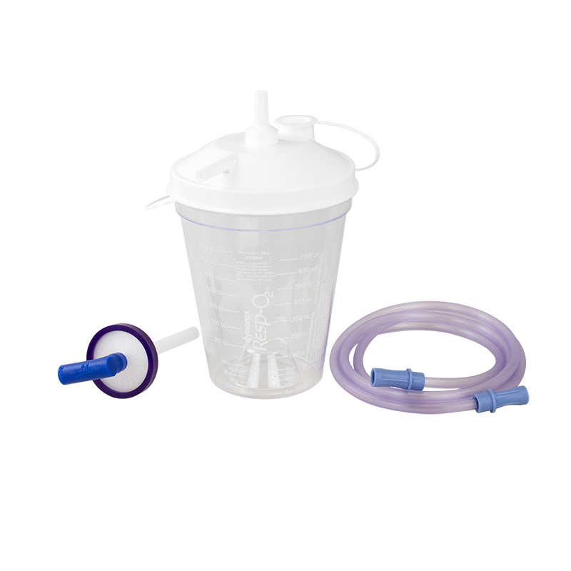 The Dynarex Resp-O2™ Suction Canister Full Kit is a convenient, ready-to-use suction kit, providing the essential tools for safe and effective secretion management. The Full Kit features a robust 800-cc suction canister with a float valve shut-off to help prevent overflow by automatically stopping suction once full. It also includes a variety of connectors and tubing, including: a ¼” x 6’ suction tube; a 16-inch cuttable silicone tubing that adjusts to required lengths; a rigid elbow connector; a soft elbow connector; and a hydrophobic shut-off disc that blocks secretions from entering the suction machine. This setup not only reduces the potential for shortages and delays that occur with separately purchased components but also ensures readiness for immediate use, saving valuable staff time and enhancing patient care. The kit is also available without the canister (32410) to suit a variety of needs.