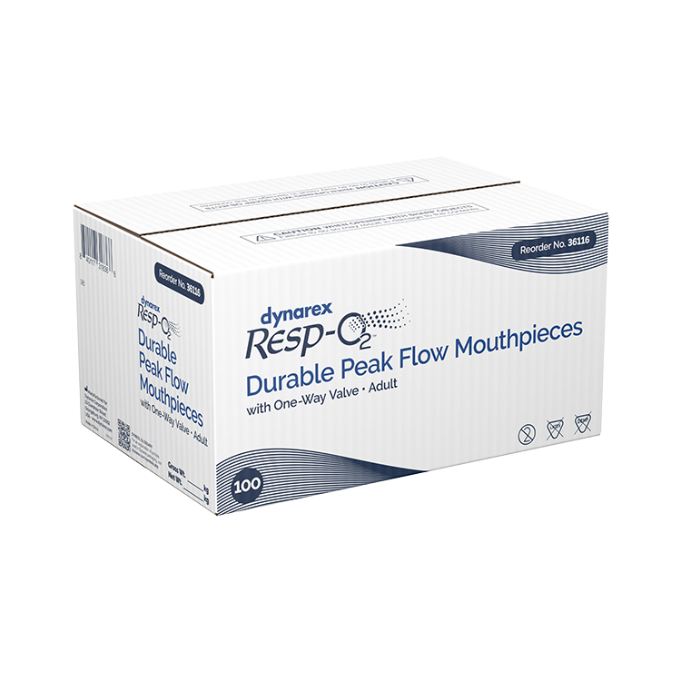 The Dynarex Resp-O2 Peak Flow Meter is a hand-held monitoring device that measures Peak Expiratory Flow (PEF), an indication of how fast a patient can forcefully exhale after a full exhalation. This lightweight, durable peak flow meter is designed to help patients track daily changes in their breathing patterns. The Dynarex Resp-O2 peak flow meter is available in Adult size (Standard Range 50-800 L/min) and Pediatric size (Low Range 50-300 L/min).