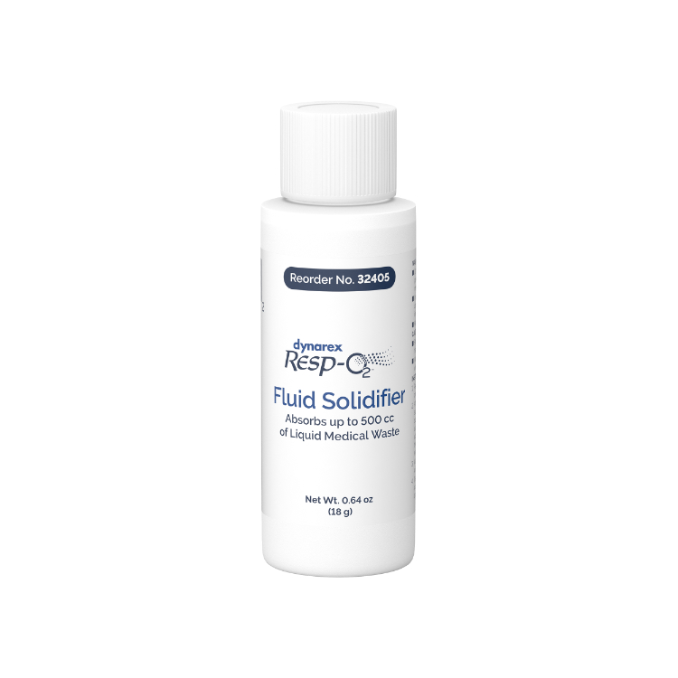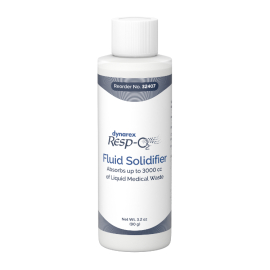 Dynarex Resp-02™ Fluid Solidifiers are designed for use with suction canisters to absorb bodily secretions and fluids and turn them into a spill-resistant gel. Dynarex Resp-O2™ Fluid Solidifiers help to protect healthcare workers and minimize the risk of exposure to aerosolized bloodborne pathogens, germs, and microorganisms by eliminating the need to handle or transport dangerous liquids.