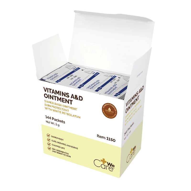 Dynarex We Care A&D Ointment is designed to help protect skin and soothe irritation caused by minor cuts, burns, and diaper rash, while helping to prevent dryness. This nourishing ointment is formulated with a base of vitamins A and D, with lavender oil and lanolin for optimal hydration.
