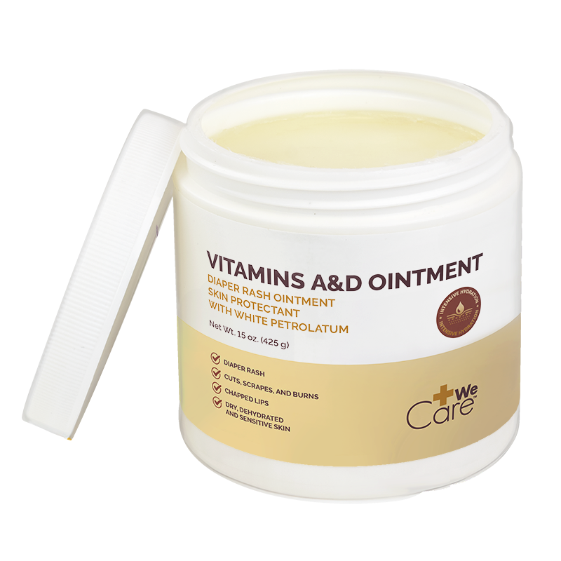 Dynarex We Care A&D Ointment is designed to help protect skin and soothe irritation caused by minor cuts, burns, and diaper rash, while helping to prevent dryness. This nourishing ointment is formulated with a base of vitamins A and D, with lavender oil and lanolin for optimal hydration.