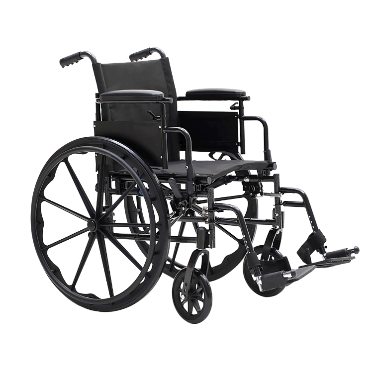 - Tool-free, adjustable, elevating leg rest or swing-away footrests with heel loops