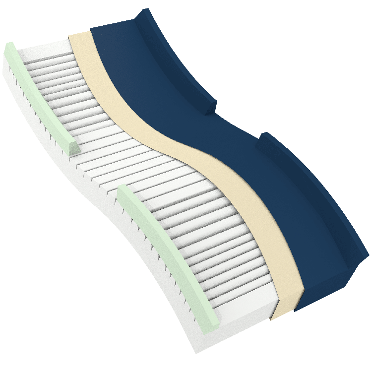 - Horizontal precision-cut high-density foam with pressure redistribution zones