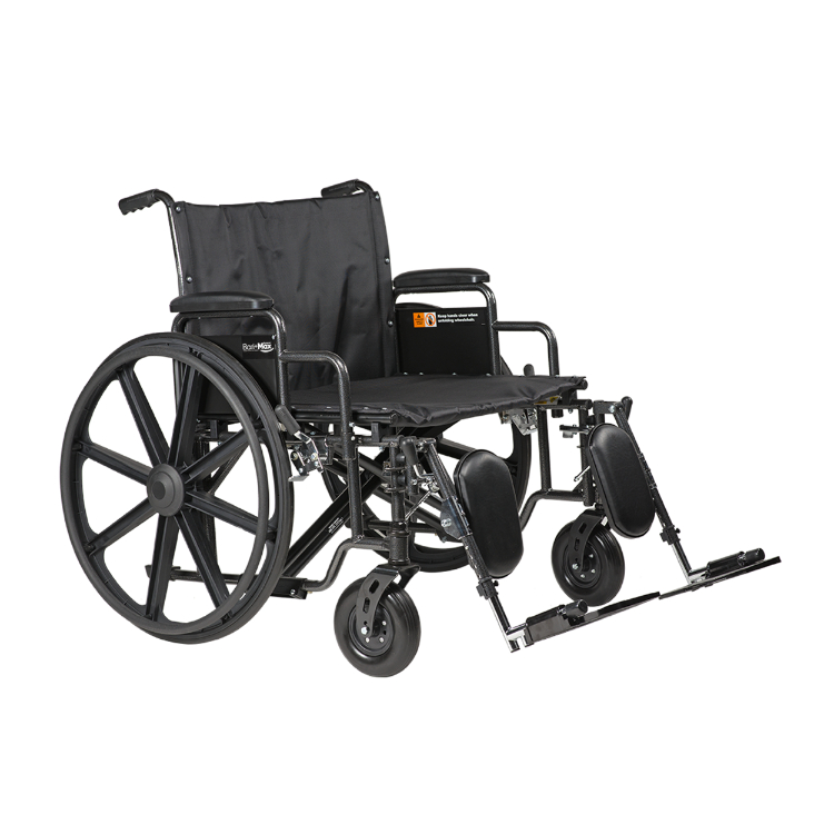 The Dynarex Bari+Max HD Wheelchair with Elevating Leg Rest is designed to provide safe, effective mobility for those requiring added support without sacrificing comfort. The Wheelchair features heavy-duty steel construction with dual cross brace for added security and stability. A sturdy leg rest with extra-wide foot plate with padded calf pads is also available for added versatility.