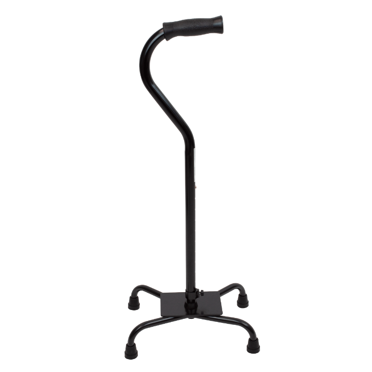 The Dynarex Bari+Max Quad Cane is an ideal choice for individuals who need additional stability while walking or performing daily tasks. Constructed with an anodized aluminum frame, the Cane is equipped with push-button height adjustment in one-inch increments and a locking knob to help prevent rattling. An ergonomically designed handle provides optimal comfort for everyday use. The Cane’s large, four-legged base provides optimal stability while non-skid tips allow for improved traction. Ideal for use in a wide range of settings, including homecare, hospitals, and rehabilitation facilities.