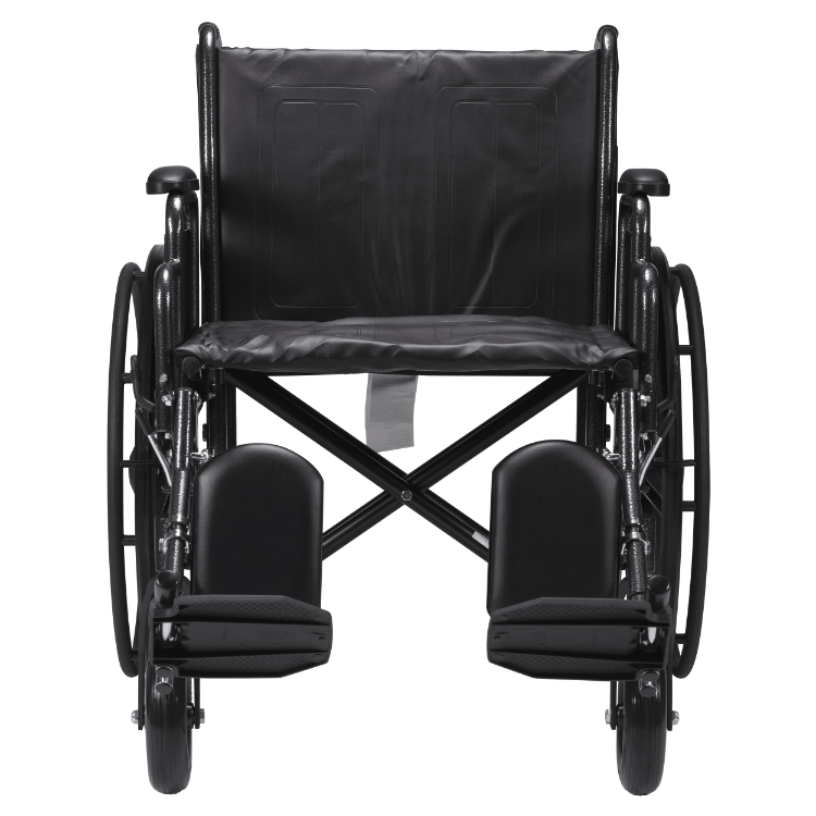The Dynarex Bari+Max Wheelchair with Elevating Leg Rest provides reliable support and improved mobility for larger users. The heavy-duty steel frame with dual cross brace for extra support allows patients to feel secure and stable. The Wheelchair is equipped with tool-free adjustable elevating leg rests with padded calf pads, and detachable arms with padded arm rests.
