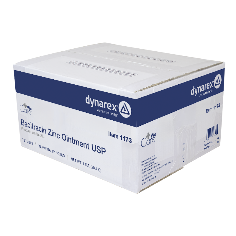 Dynarex Bacitracin Zinc Ointment USP is a premium antibiotic ointment designed to help reduce the risk of infection in minor cuts, burns, and abrasions. The high-quality zinc and bacitracin formula helps minimize bacterial growth.