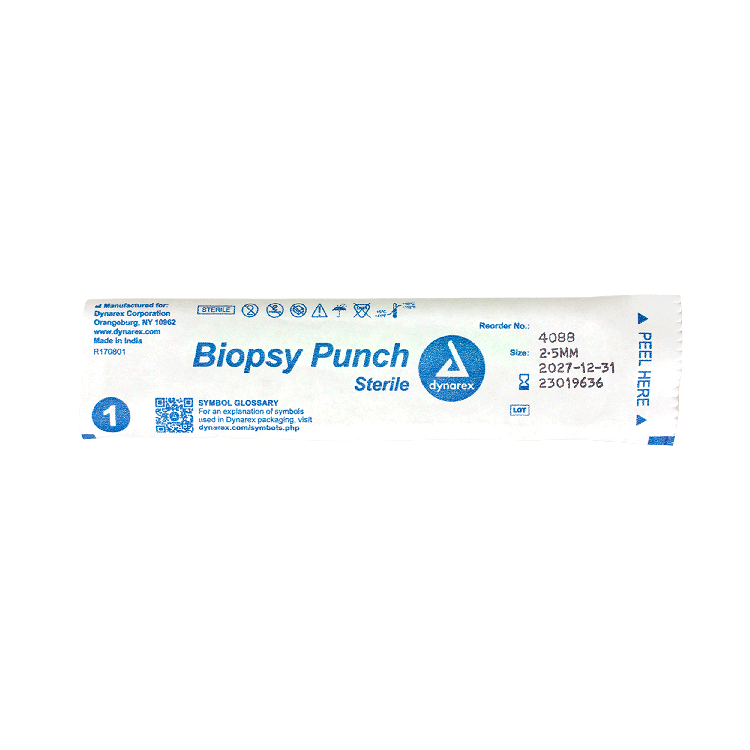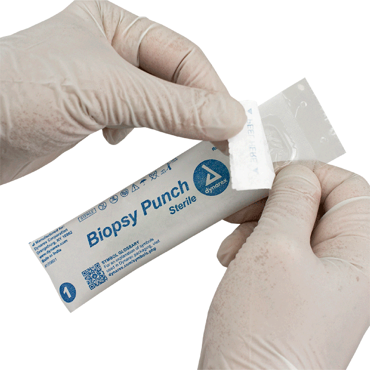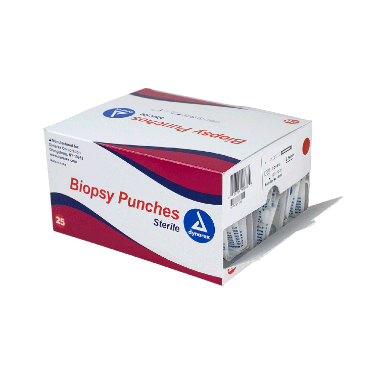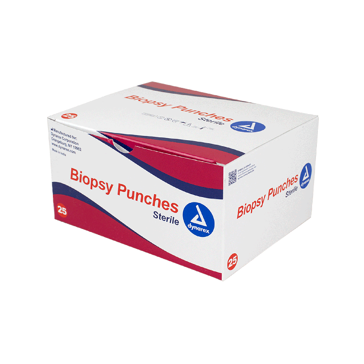 Dynarex Biopsy Punches feature a seamless stainless-steel blade with a durable, ribbed handle, designed to provide greater comfort and control when obtaining tissue samples.