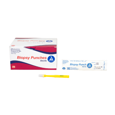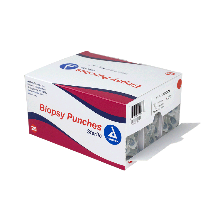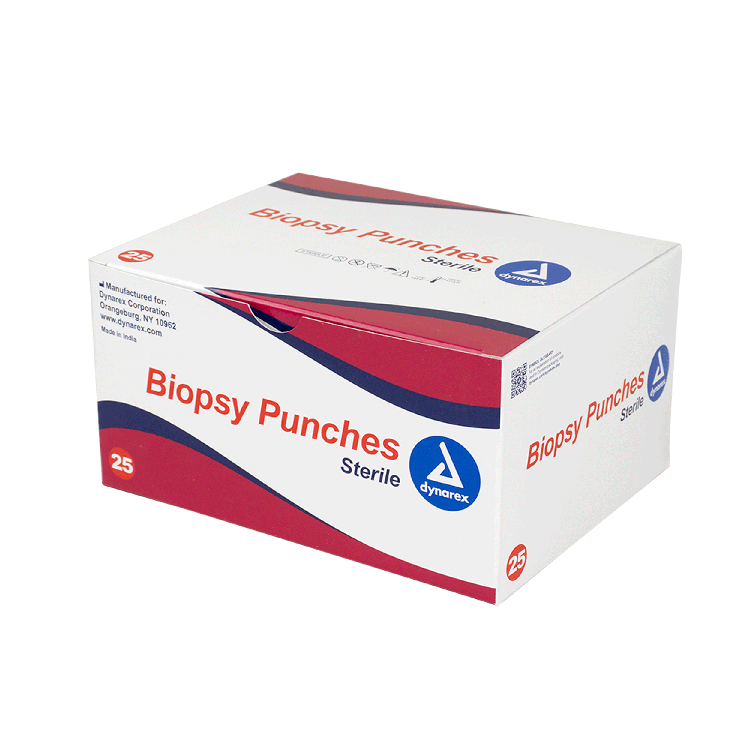 Dynarex Biopsy Punches feature a seamless stainless-steel blade with a durable, ribbed handle, designed to provide greater comfort and control when obtaining tissue samples.