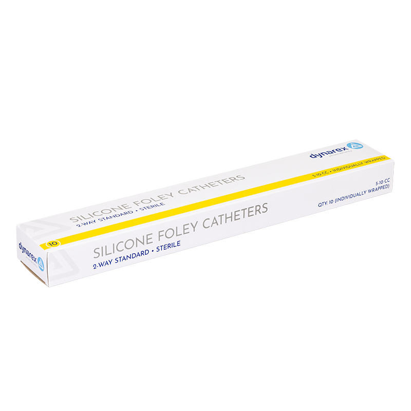 Dynarex Silicone Foley Catheters are 2-way catheters designed to provide dependable drainage and improved patient comfort during long-term indwelling use. Made from clear silicone to allow easy visualization of urine flow, clots, and mucus, the catheters feature large, smooth eyes to support efficient drainage and reduce discomfort. The pliable shaft and firm tip help aid smooth insertion, while the silicone material is designed to minimize tissue irritation and reduce the risk of encrustation over time.