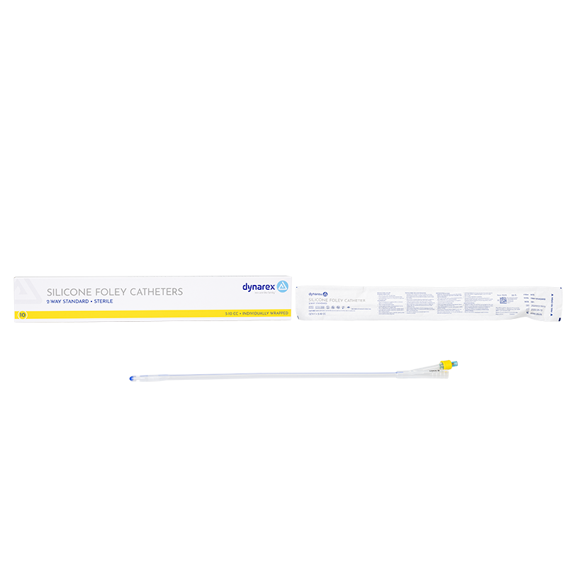 Dynarex Silicone Foley Catheters feature a 2-way design with smooth drainage eyes and a clear silicone body for easy visualization. Constructed for reliable performance and enhanced patient comfort during extended indwelling use.