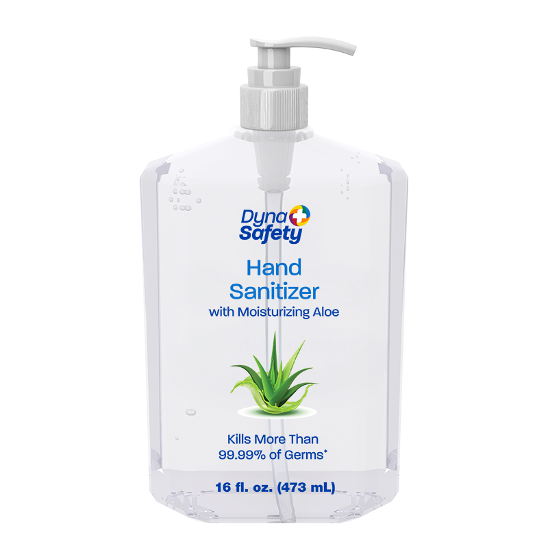 Dynarex DynaSafety Hand Sanitizer is an alcohol-based disinfectant designed to eliminate more than 99% of germs and bacteria. The liquid formula is infused with aloe to help soothe and moisturize skin.