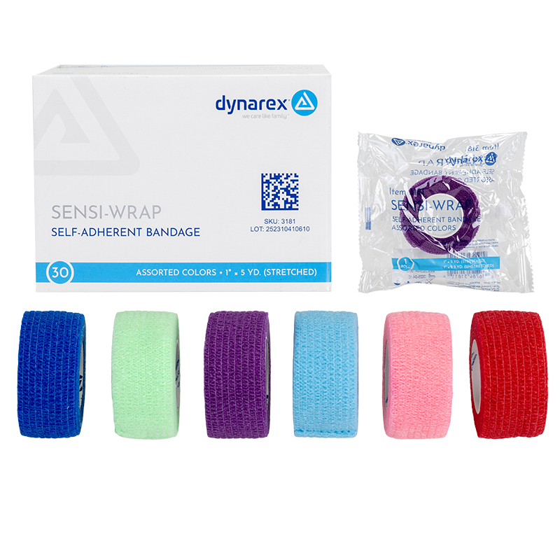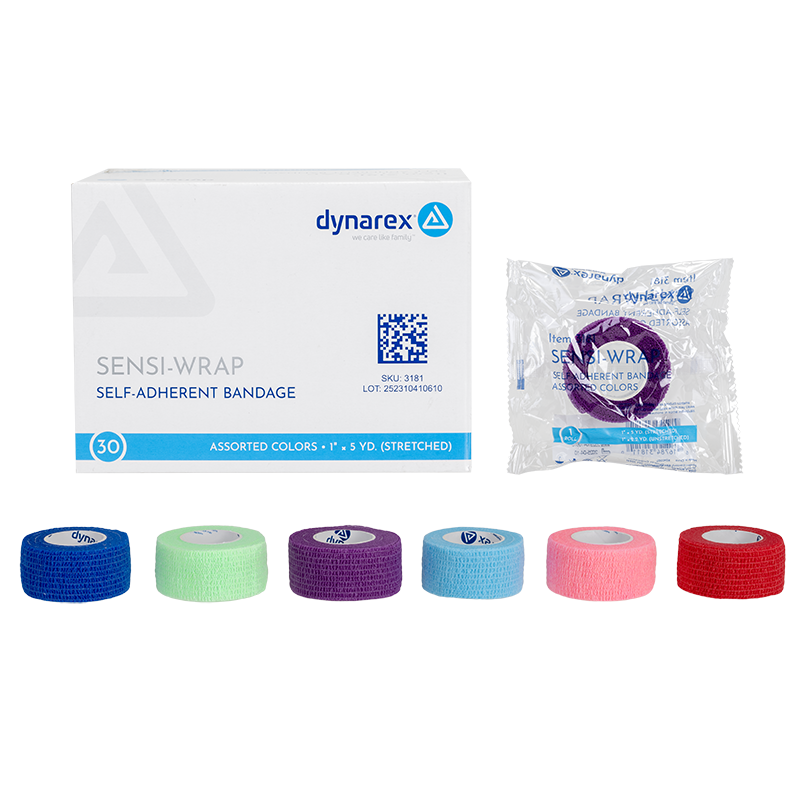 Dynarex Sensi-Wrap Self-Adherent Bandage Rolls are lightweight bandages, used in both human and veterinary markets, designed to provide effective compression to help prevent and treat a variety of injuries in both the human and veterinary markets. These high-quality Bandages provide optimal pressure to help reduce swelling and prevent fluids from accumulating at the injury site.