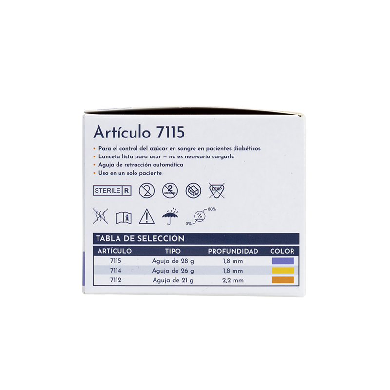 • 7112, 7114, & 7115: Pressure activated design releases the safety lancet with gentle pressure