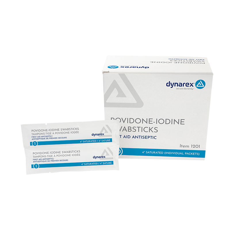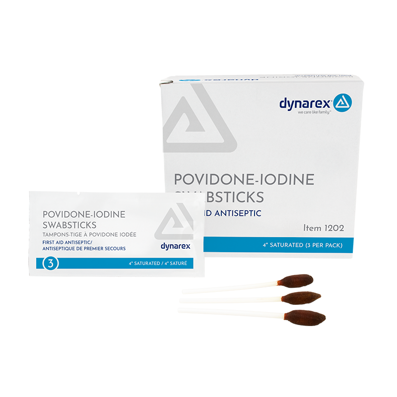 Dynarex Povidone Iodine Swabsticks are antiseptic plastic sticks with soft tip applicators crafted for effective cleansing and preparation of skin for procedures. These Swabsticks are saturated with 10% povidone iodine solution to help control bacteria and minimize the risk of infection. Povidone Iodine Swabsticks are stored in convenient foil packs and designed for single use to help prevent cross-contamination.