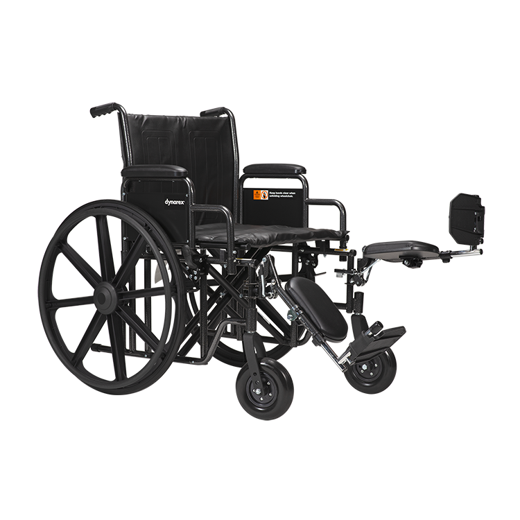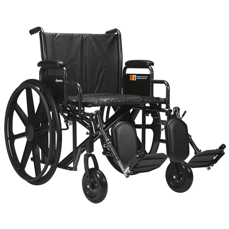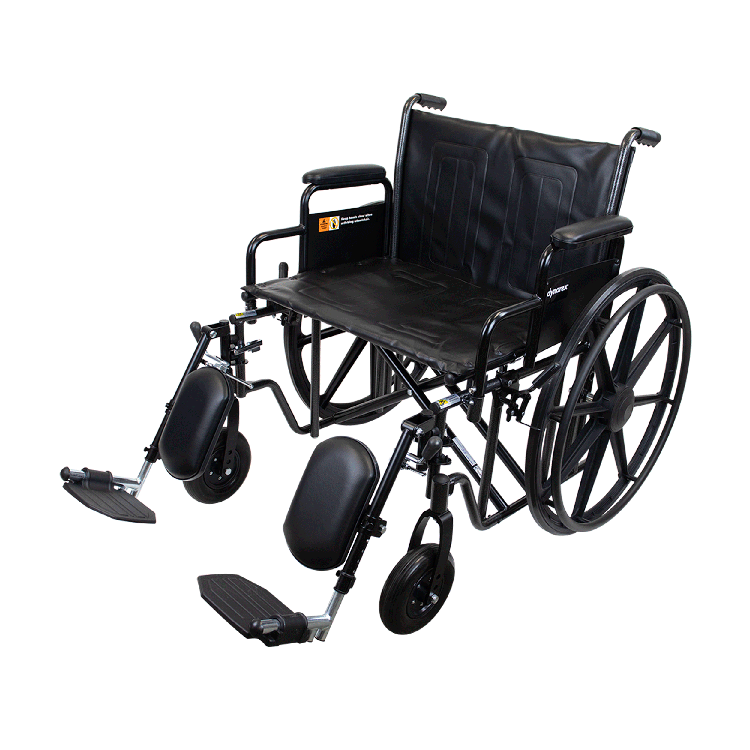 The Dynarex Bari+Max Wheelchair with Elevating Leg Rest provides reliable support and improved mobility for larger users. The heavy-duty steel frame with dual cross brace for extra support allows patients to feel secure and stable. The Wheelchair is equipped with tool-free adjustable elevating leg rests with padded calf pads, and detachable arms with padded arm rests.