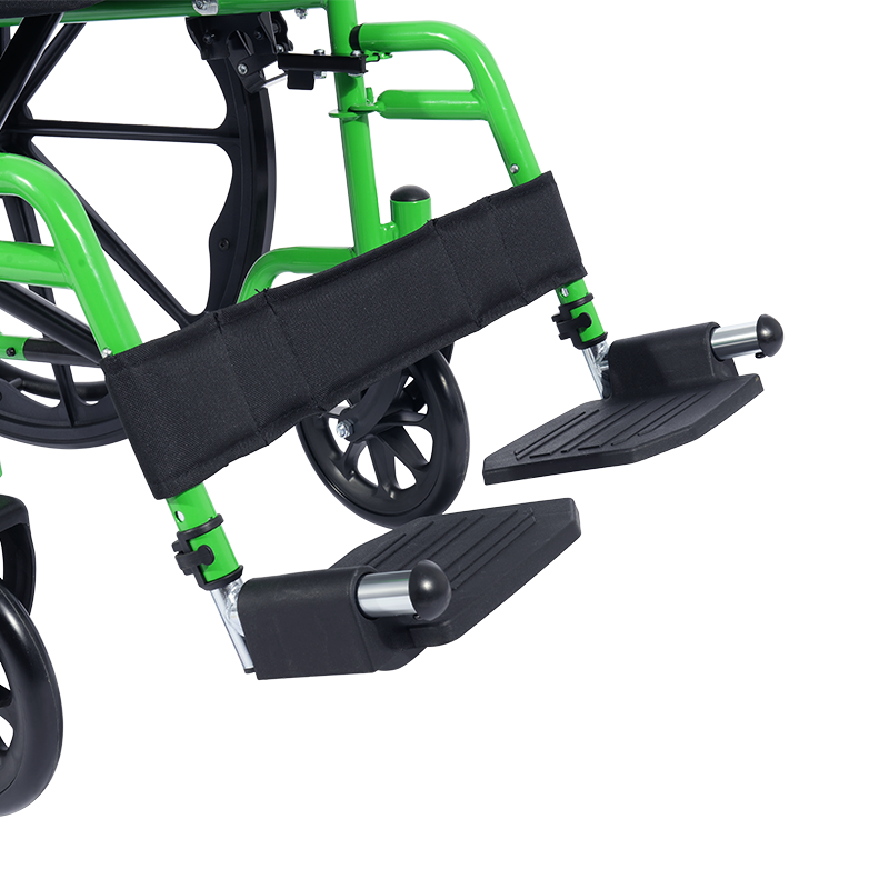 The Dynarex Greenline Cruiser Wheelchair is a premium-quality wheelchair ergonomically designed for enhanced comfort and convenient portability. The wheelchair features a durable steel frame for optimal support and push-to-lock wheel locks for added security. Snap-on solid rubber tired mounted on composite wheels provide a consistently smooth ride. The Wheelchair is designed with padded desk-length armrests for added comfort. Armrests flip back for convenient, easy transfers. Available with elevating leg rests or swing-away footrests with leg straps.