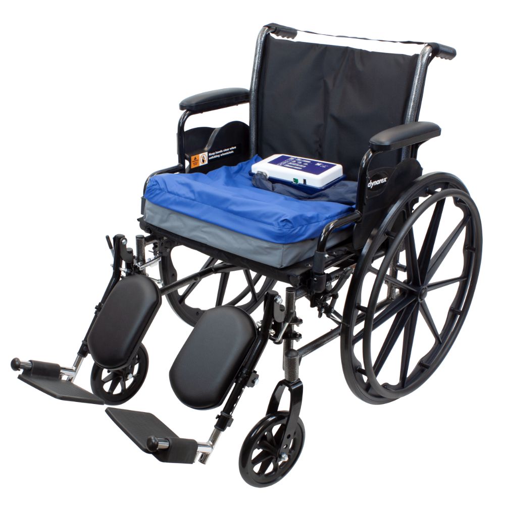 The Dynarex Ever-Soft™ Alternating Pressure Air Cushion includes a high-quality foam base and an easy-to-clean, vapor-permeable cover with non-skid bottom. The included digital pump provides a choice of static mode with 3 comfort-level settings and alternating mode with adjustable cycle times of 10, 15, or 20 minutes. The pump is stored in a water-resistant pouch with a clear window for easy pump control and can be easily mounted on a wheelchair for added convenience.