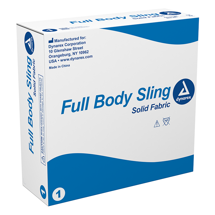 Dynarex Full Body Solid Fabric Slings are constructed from bonded polyester materials with an inner suede layer for maximum durability and patient comfort. The Slings are designed to be used in conjunction with electric patient lifts to safely accommodate patient transfers from a variety of surfaces, including wheelchairs, beds, and floors.