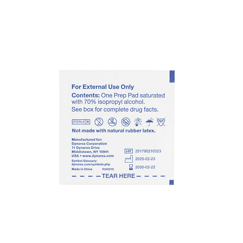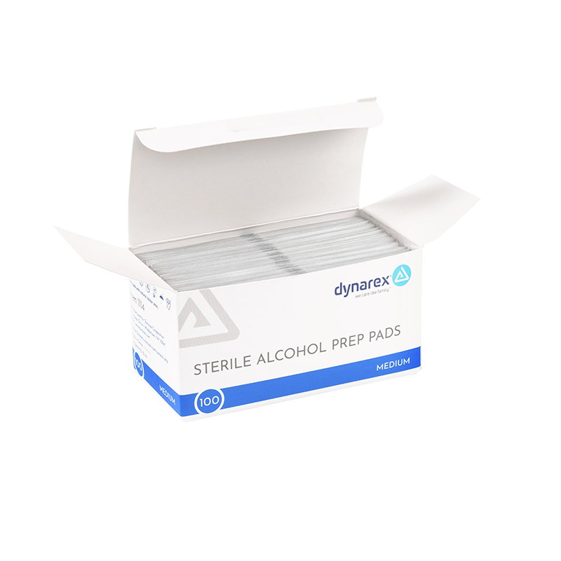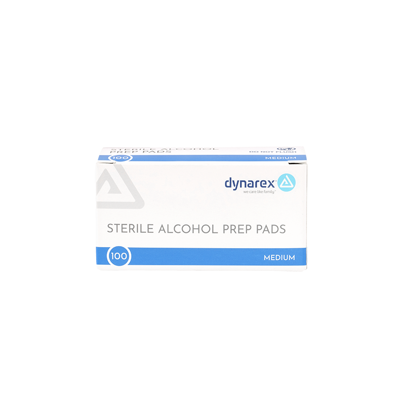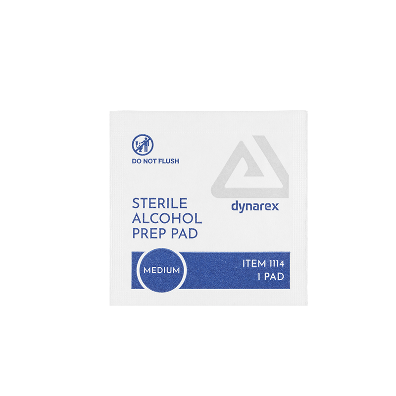Dynarex Sterile Alcohol Prep Pads are designed to safely cleanse and prepare skin prior to injection or venipuncture. These premium-quality Pads are saturated with 70% isopropyl alcohol to help fight bacteria and germs and reduce the risk of contamination. These 1-ply, non-woven Prep Pads are soft and absorbent for improved effectiveness. The Pads are designed for single use and sealed in sterile pouches for optimal hygiene.