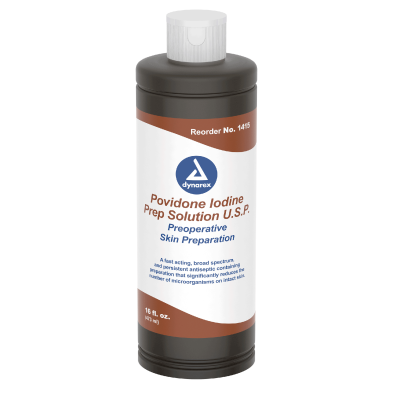 Dynarex Povidone Iodine Prep Solution is a high-quality antiseptic solution designed to effectively prepare skin for medical procedures and to help reduce the risk of infection in minor wounds.