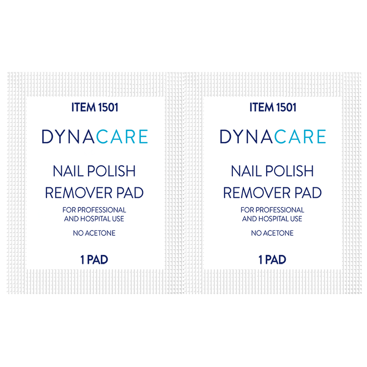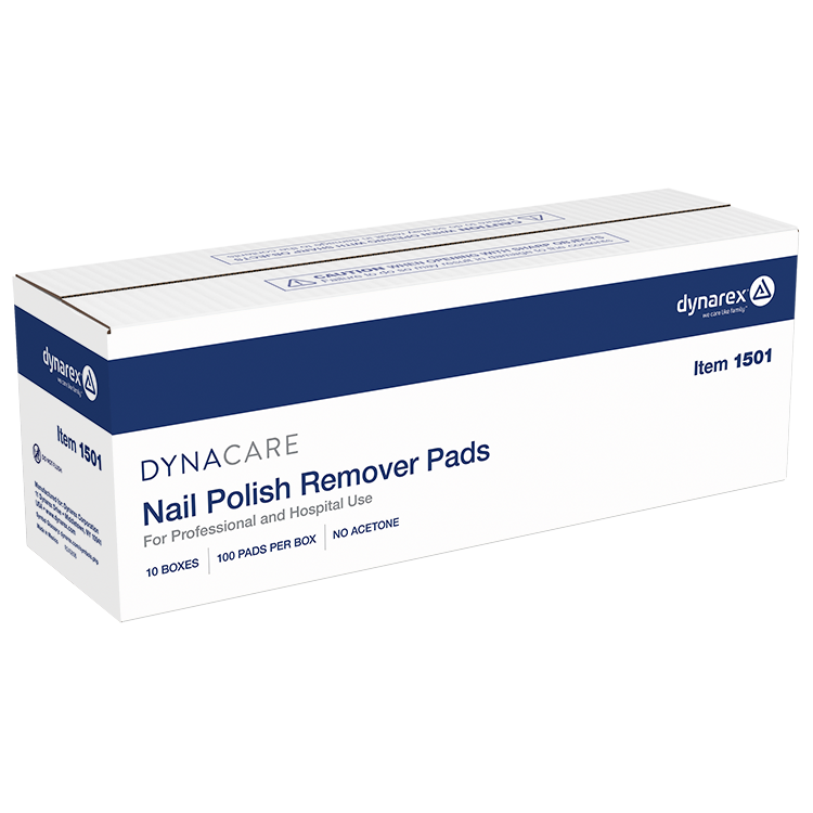 Dynarex Nail polish remover pads quickly remove nail polish to aid in respiratory evaluation of a patient. Quantity per box: 100 Boxes per Case: 10