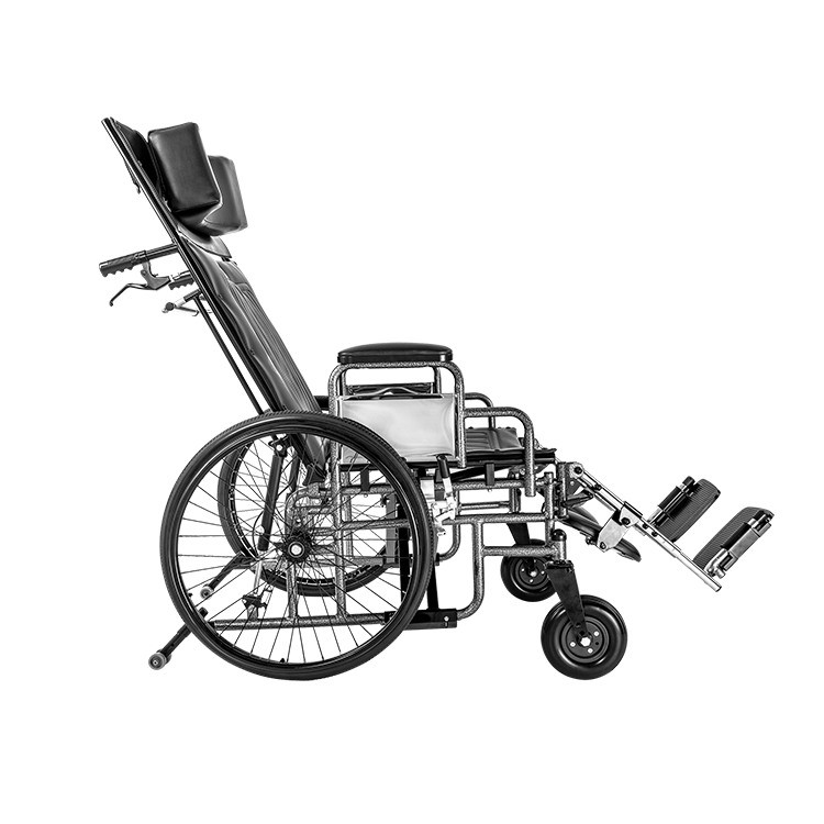 The Dynarex Bari+Max Bariatric Reclining Wheelchair with Elevating Leg Rest offers the durability of a heavy-duty wheelchair frame with the added versatility and comfort of a full reclining back. The steel construction with hydraulic reclining mechanism allows for infinite adjustments up to 180 degrees and includes a locking back bar to keep the back rest from hammocking. Added benefits include tool-free adjustable elevating leg rests with padded calf pads.