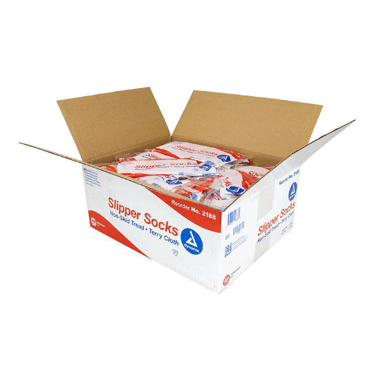 Dynarex's Universal Slipper Socks are designed with comfort-fit material and feature anti-slip rubber grips to help prevent slips and falls. The soft terrycloth fabric keeps feet warm, dry, and comfortable. Ideal for patients in a variety of clinical and long-term care facilities.