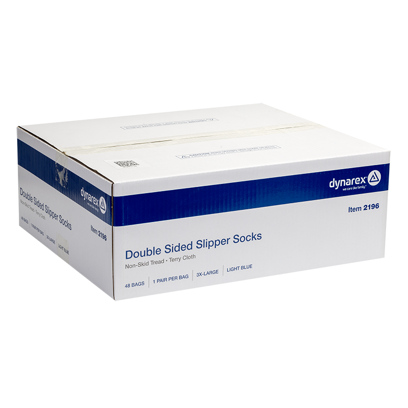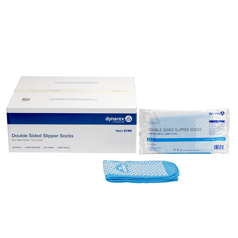 Dynarex Slipper Socks are covered with rubber grippers to help prevent patient falls. The Slippers are made of soft terrycloth to keep feet warm, dry, and comfortable. Ideal for patients in a variety of clinical and long-term care facilities.