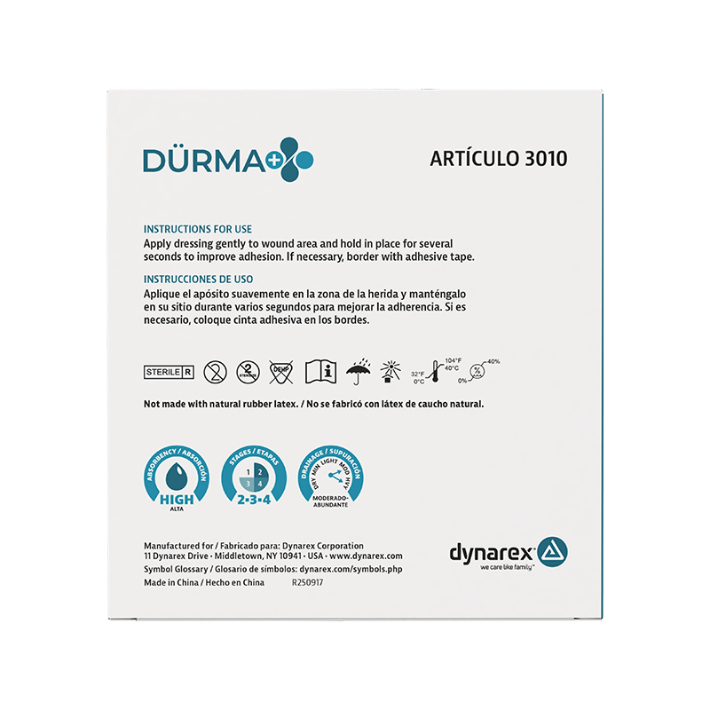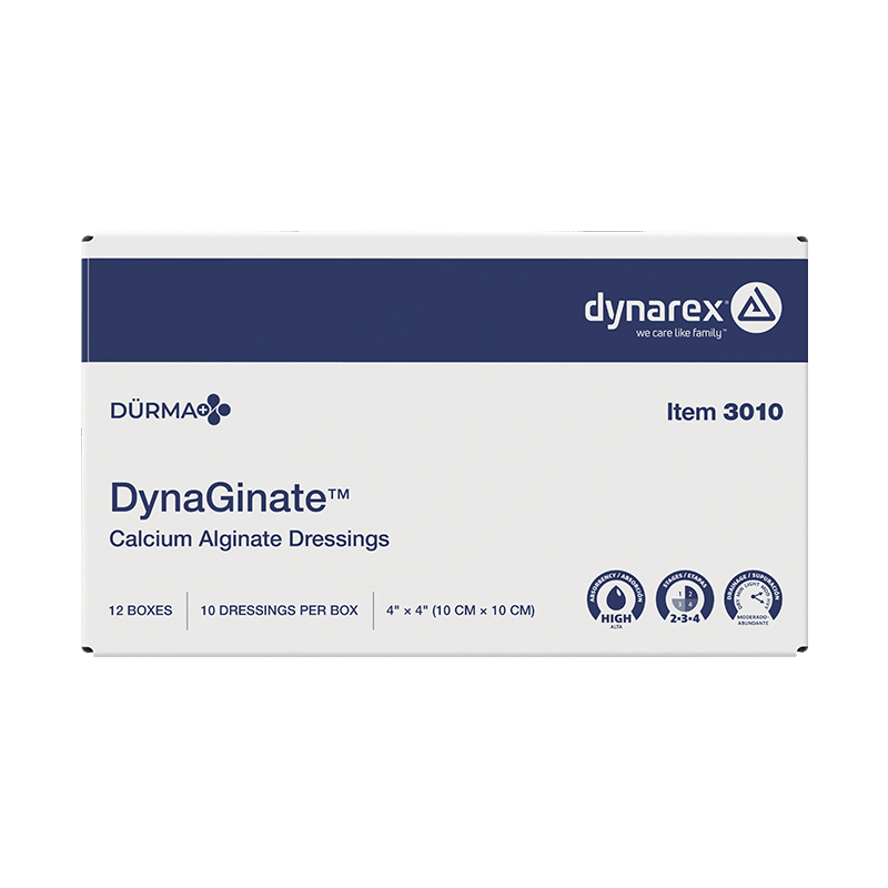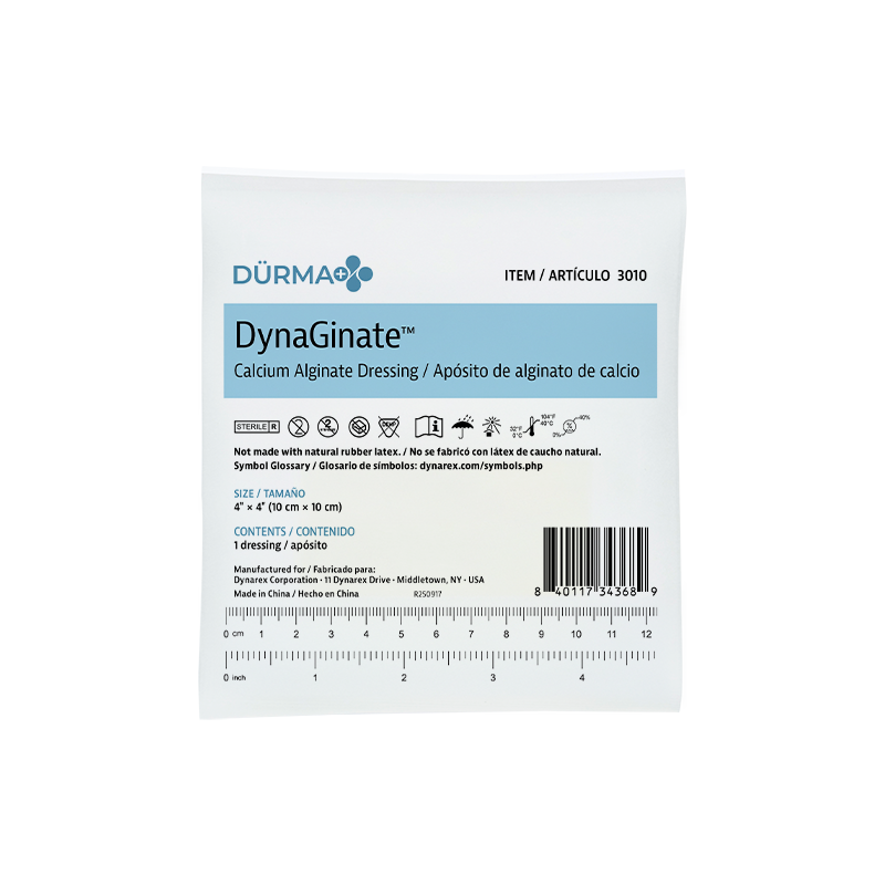 Dürma+ DynaGinate Calcium Alginate Dressings are highly absorbent primary dressings designed to support the healing of heavily exuding wounds. Composed of calcium alginate fibers, these dressings transform into a soft, fibrous gel upon contact with wound exudate — helping to maintain a moist environment and encouraging natural debridement. The gel conforms to the wound bed without adhering to tissue during dressing changes. Ideal for managing wounds at stages 3 and 4, including in patients who are bedridden, diabetic, or managing chronic venous insufficiency.