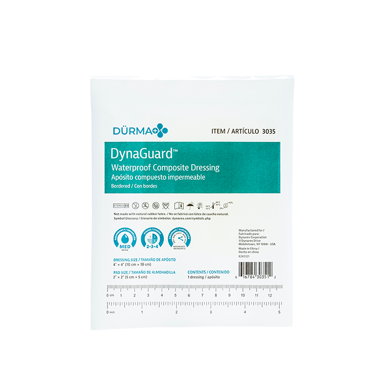 Dynarex’s DynaGuard Waterproof Dressing is a sterile, multi-layered foam dressing that provides a warm moist healing environment. The waterproof top layer acts as a bacterial barrier, protecting the wound from any outside liquids that can cause infection. The inner foam layer absorbs drainage, while the low-adherent contact layer and adhesive non-woven fabric border provide protection to the wound bed and are gentle on the skin.