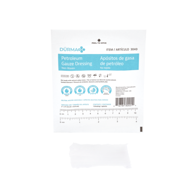 Dürma+ Petroleum Gauze Dressings are lightweight, conformable dressings designed for use on low-draining wounds. Impregnated with petroleum jelly, the dressings help maintain a moist wound environment to promote autolytic healing while minimizing adherence to the wound bed. They are suitable for use as primary dressings on full-thickness wounds such as donor sites, minor burns, tube sites, and non-infected wounds at stages 2, 3, and 4. Sterile and individually packaged, Durma+ Petroleum Gauze Dressings support hygiene and comfort during dressing changes.