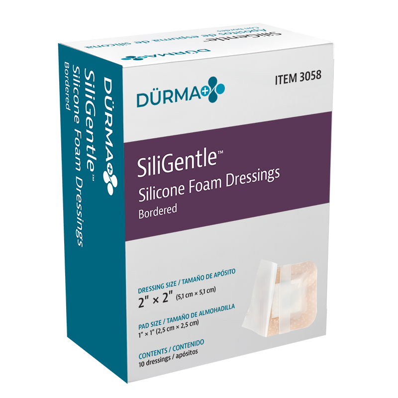 Dürma+ SiliGentle Silicone Foam Dressings are soft, highly absorbent dressings with a vapor-permeable waterproof film. Designed to lock away exudate and minimize pain and trauma, they are available in bordered and non-bordered varieties.
