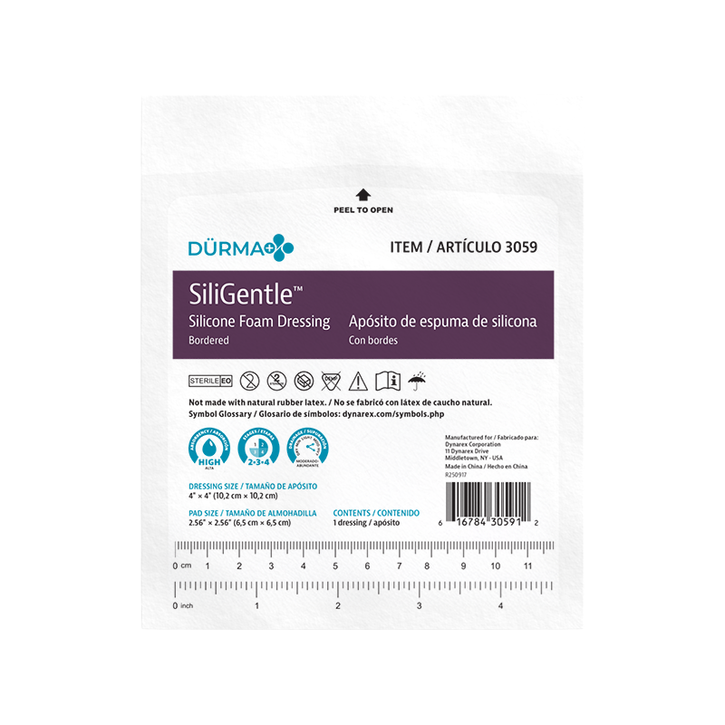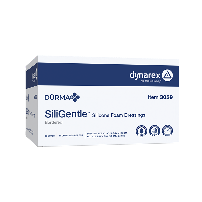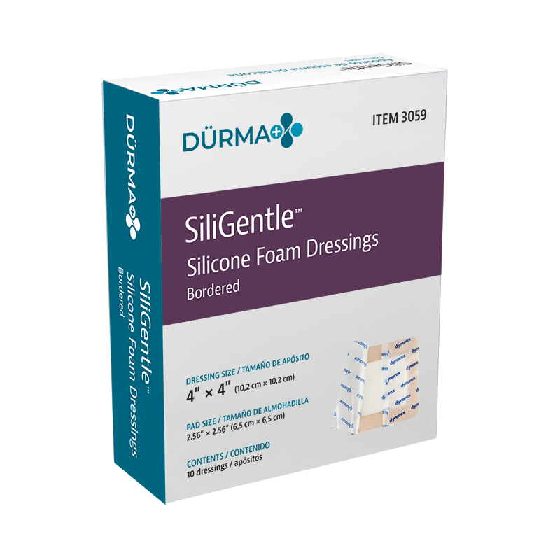 Dürma+ SiliGentle Silicone Foam Dressings are soft, highly absorbent dressings with a vapor-permeable waterproof film. Designed to lock away exudate and minimize pain and trauma, they are available in bordered and non-bordered varieties.