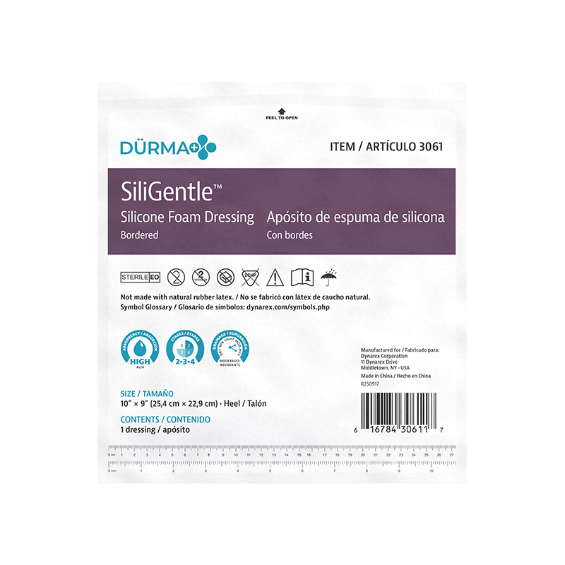 Dürma+ SiliGentle Silicone Foam Dressings are soft, highly absorbent dressings with a vapor-permeable waterproof film. Designed to lock away exudate and minimize pain and trauma, they are available in bordered and non-bordered varieties.