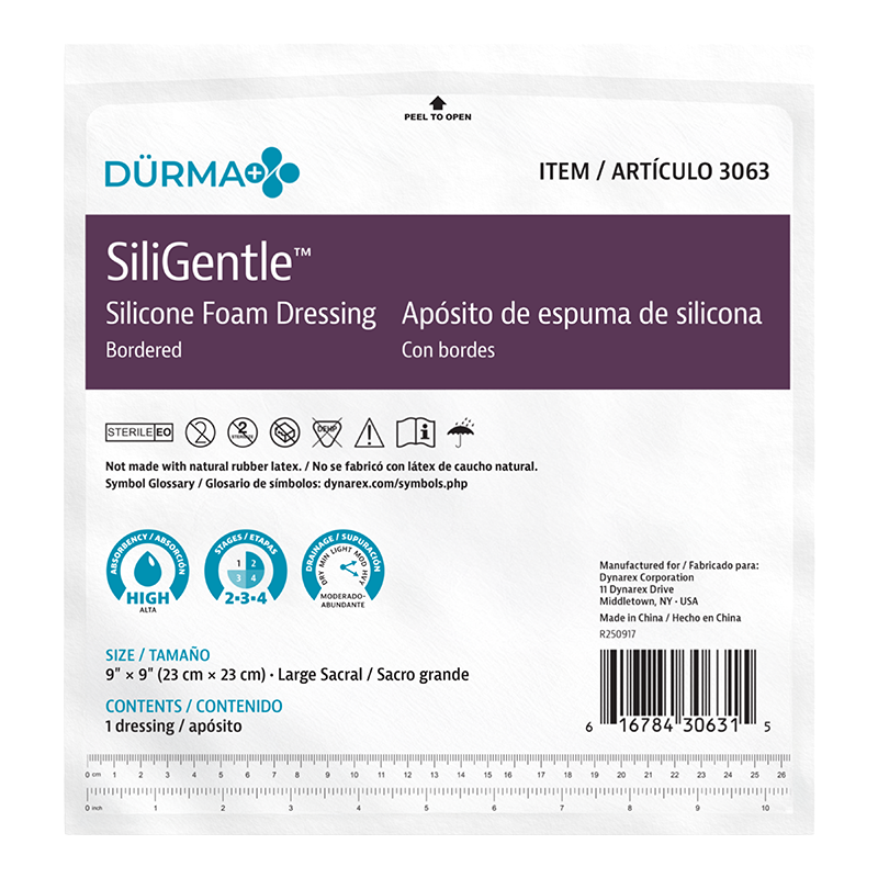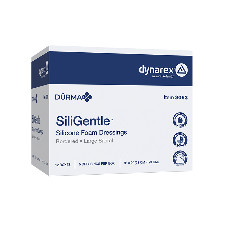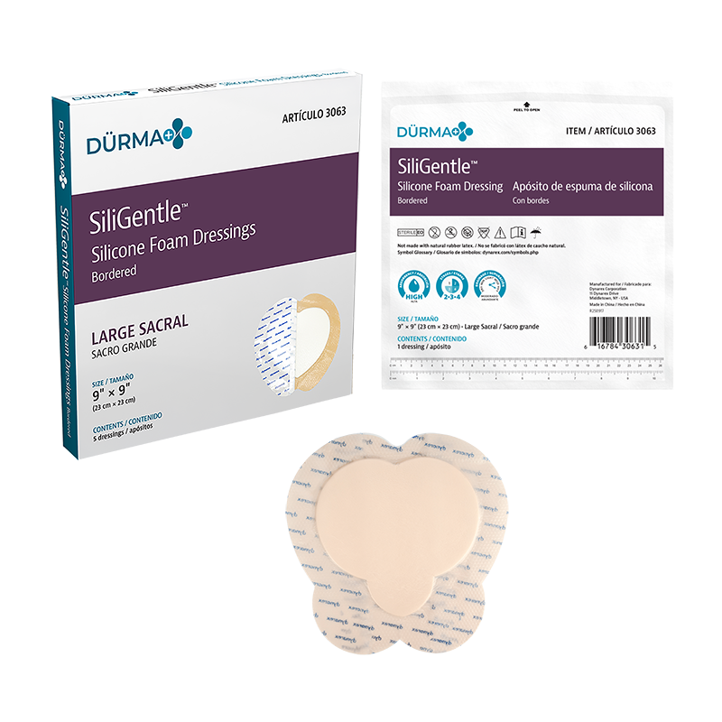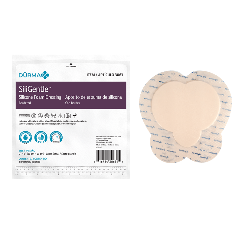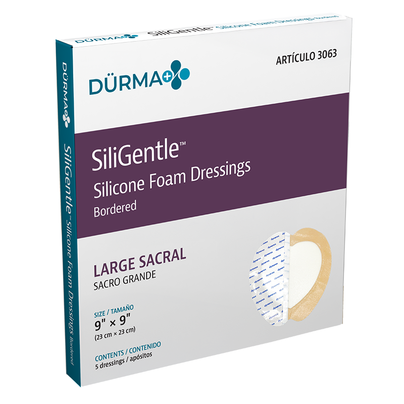 Dürma+ SiliGentle Silicone Foam Dressings are soft, highly absorbent dressings with a vapor-permeable waterproof film. Designed to lock away exudate and minimize pain and trauma, they are available in bordered and non-bordered varieties.