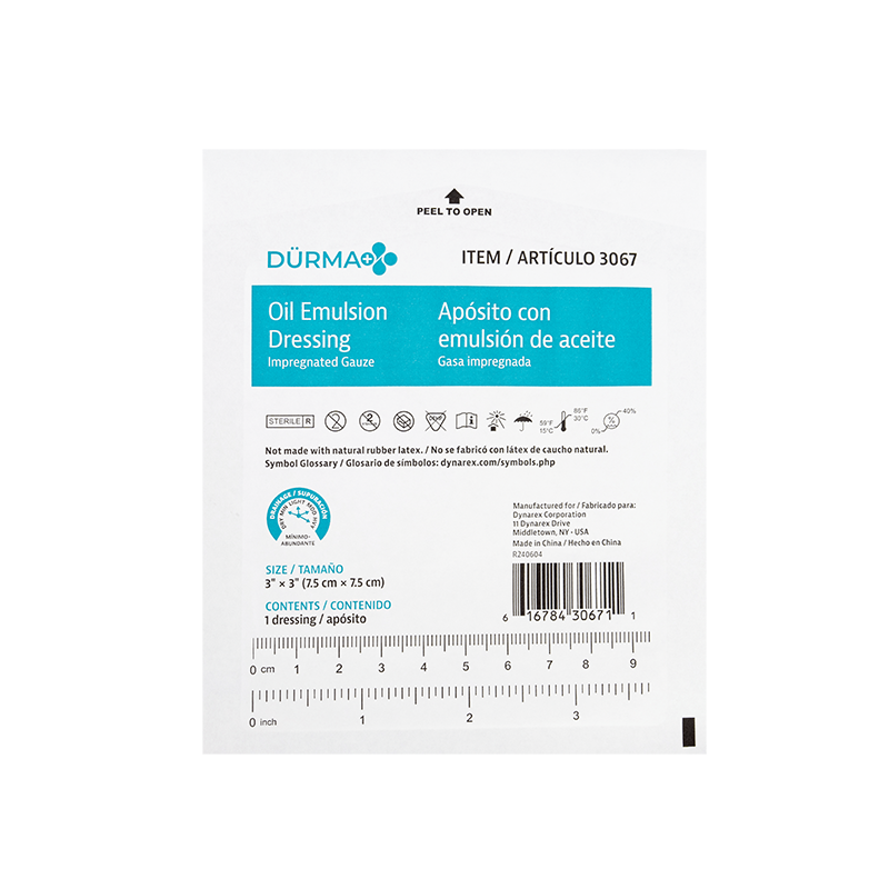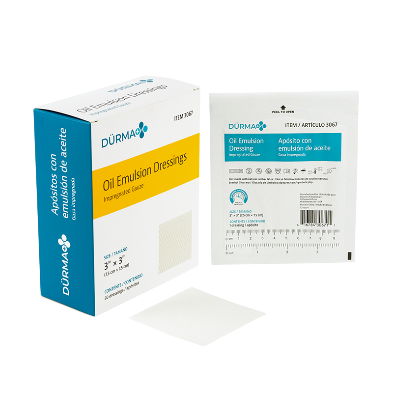 Dürma+ Oil Emulsion Dressings are non-adherent knitted gauze dressings impregnated with an emulsion of petrolatum and sunflower oil. These conformable, non-occlusive dressings allow exudate to flow into a secondary dressing, helping reduce the risk of skin maceration.