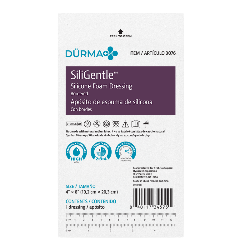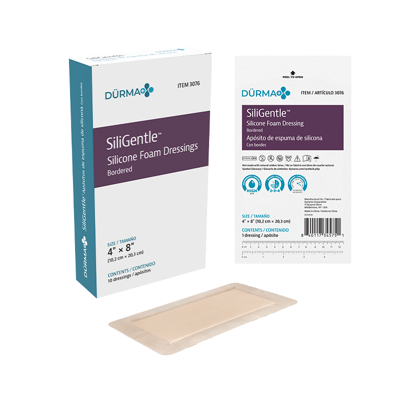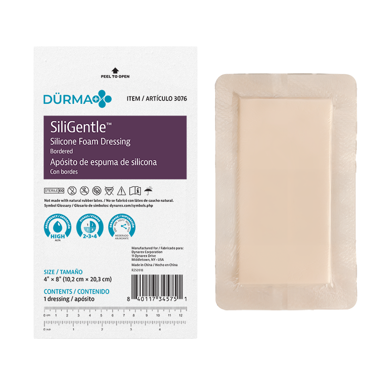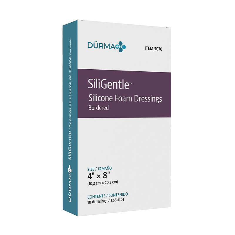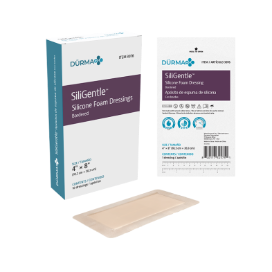 Dürma+ SiliGentle Silicone Foam Dressings are soft, highly absorbent dressings with a vapor-permeable waterproof film. Designed to lock away exudate and minimize pain and trauma, they are available in bordered and non-bordered varieties.