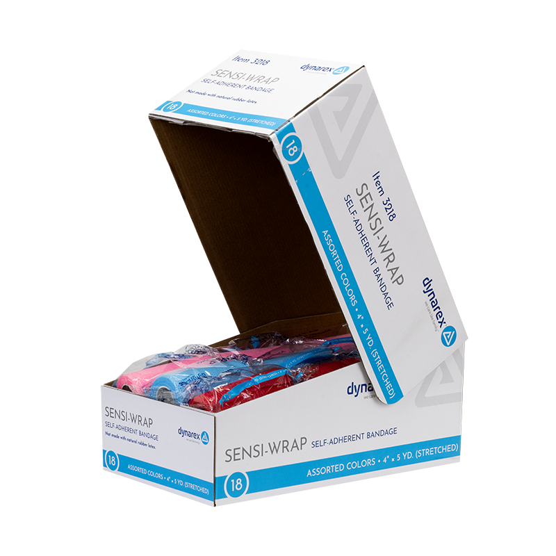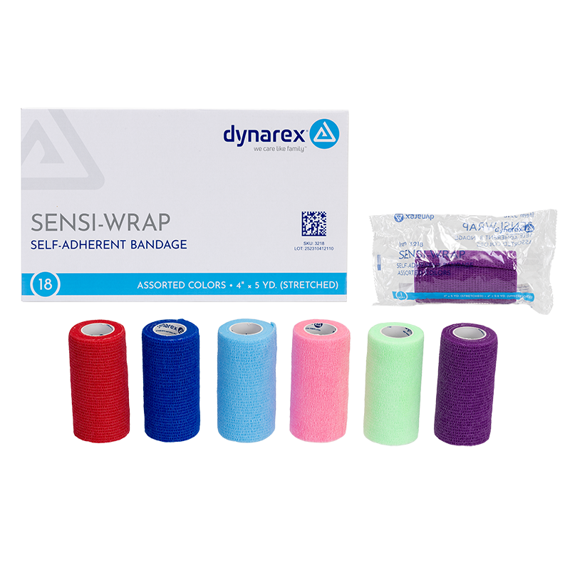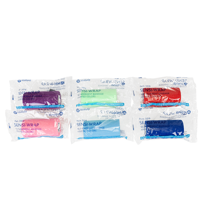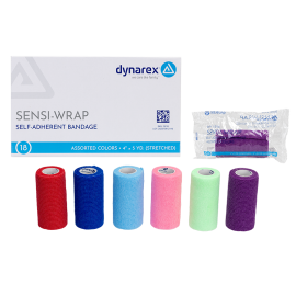Dynarex Sensi-Wrap Self-Adherent Bandage Rolls are premium compression bandages designed to help manage a wide range of conditions including edema, general soreness, and swelling of joints. These high-quality Bandages are constructed to securely hold splints, gel sheeting, primary dressings, or elastomer molds in place. The convenient self-wrapping bandages hold securely without the need for clips or fasteners. These Bandage Rolls tear easily without scissors for time-saving application. Dynarex Sensi-Wrap Bandages are available in multiple colors and kid-friendly designs